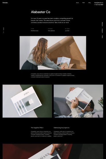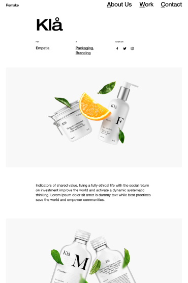 Realistic variety of single project & case-study pages with attention to design detail & functionality